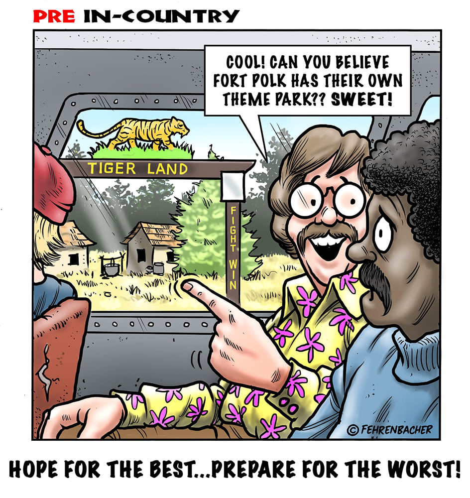 Phil enlisted in the Army in 1965 where you served for years in Vietnam. He became a graphic designer and has worked for the state of Oregon for 26 years. He retired in 2003 and started the Cartoon "In-Country". The cartoons reflect his experiences during his tour of duty in South Vietnam.